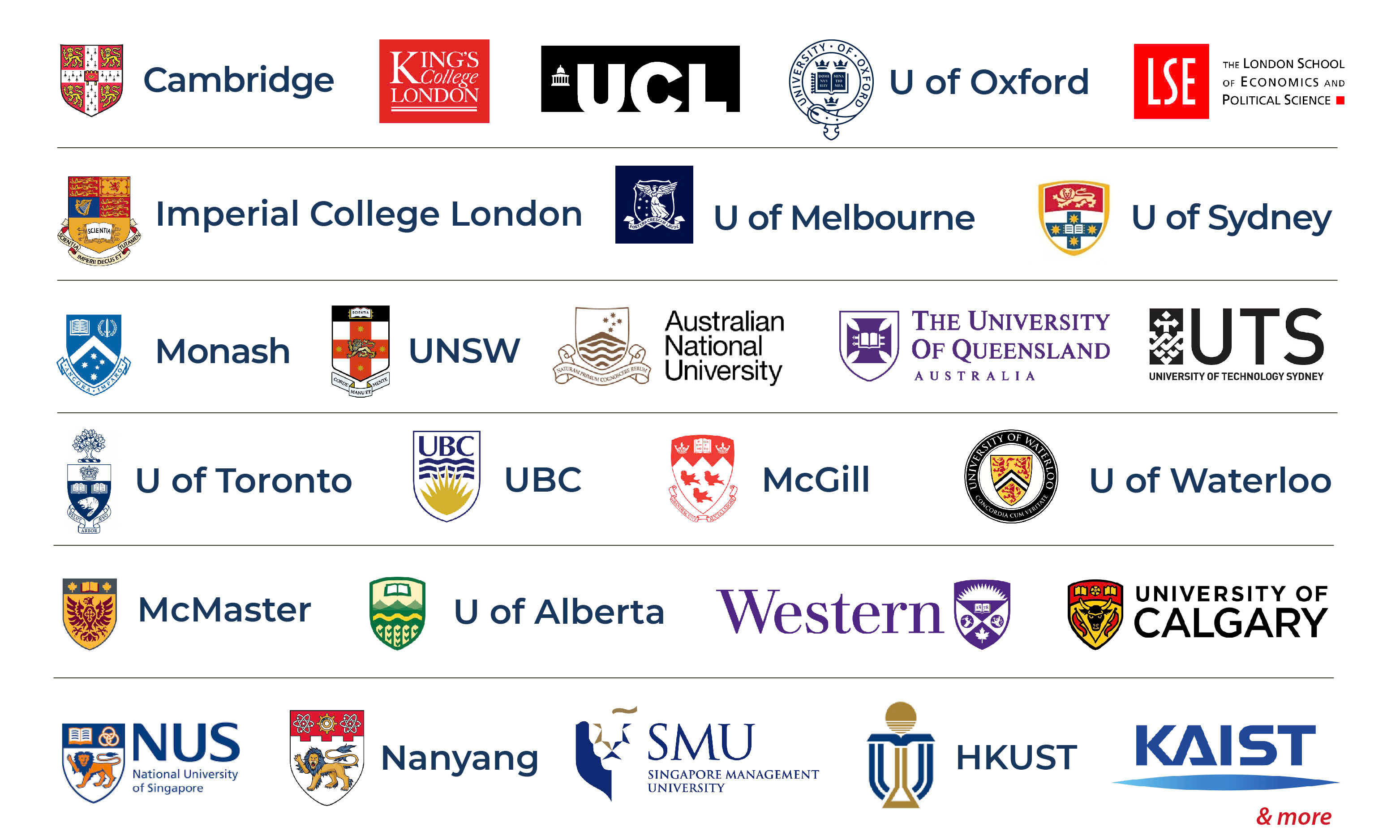 Summit tự hào có thành tích apply vào ĐH TOP 1-50 Mỹ, TOP 8 ĐH Ivy League và TOP 10 Canada dẫn đầu cả nước qua 15 mùa (2010-2025), các học viên Summit trúng tuyển vào các ĐH top 5 Úc: University of Melbourne, University of New South Wales (UNSW), University of Sydney, Australian National University (ANU), Monash University, các ĐH top 5 Anh Quốc: University of Oxford, University of Cambridge, University College London, Imperial College London, King’s College London, các ĐH top 5 Canada: University of Toronto, UBC, McGill, McMaster, Alberta, các ĐH top 5 Singapore: NUS, Nanyang, Singapore University of Technology and Design, Singapore Management University.