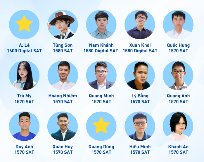 Với 16+ năm kinh nghiệm luyện thi SAT, Summit tự hào khi có 1 học viên đạt 1600/1600 SAT, 3 học viên 1590/1600 SAT, 8 học viên 1580/1600 SAT, 1500++ học viên đạt 1450-1570/1600 SAT (tính đến T10/2025).