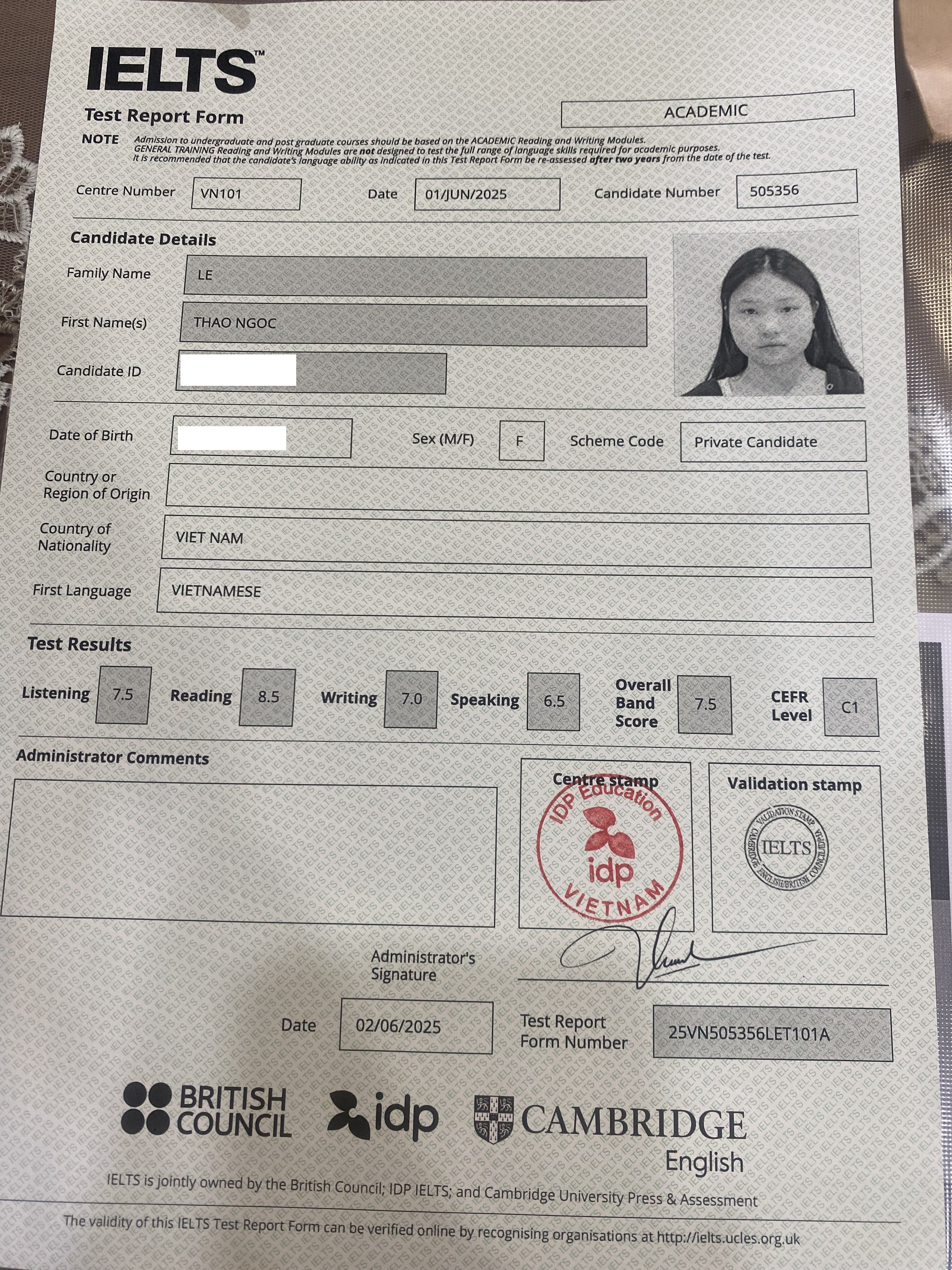 Lê Thảo Ngọc – 7.5 IELTS