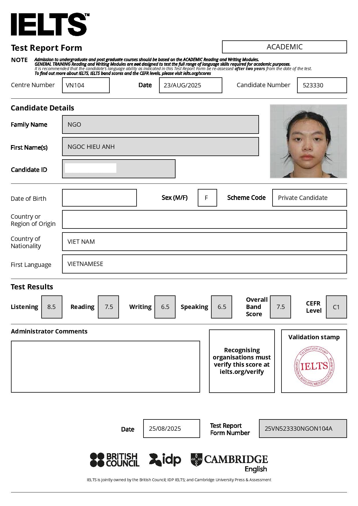 Gần 3 tháng ôn luyện tại Summit đã khiến em tự tin và chắc chắn hơn khi tham gia bài thi thật nhờ có sự giúp đỡ nhiệt tình và tận tâm của các thầy cô. Ngoài ra, Summit cũng là môi trường tốt để em kết nối và tự ôn luyện cùng các bạn đồng trang lứa.