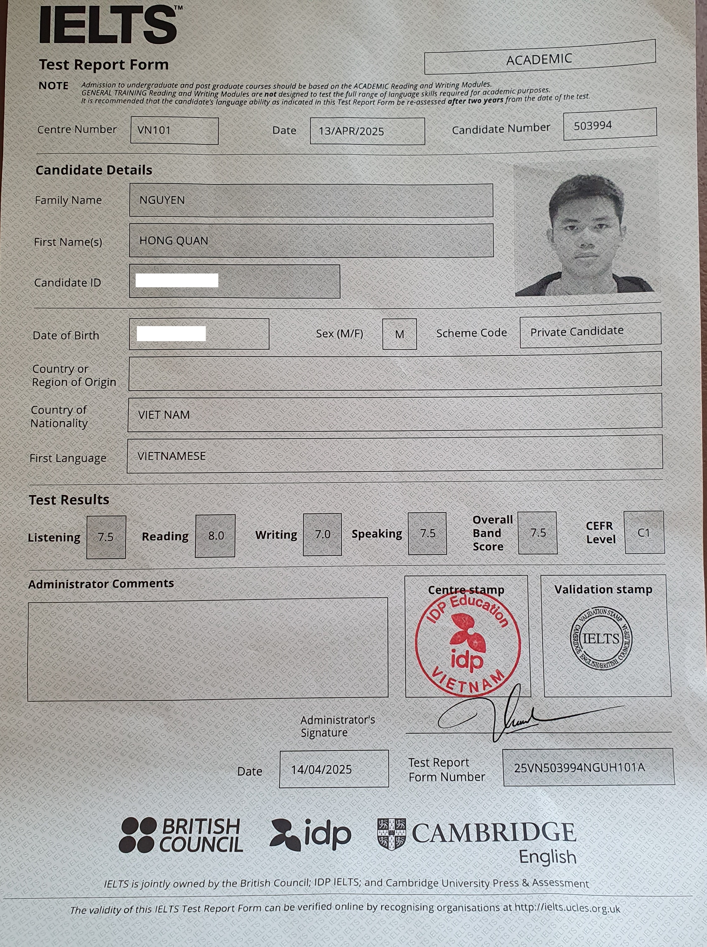 Trong quá trình học, em thường luyện đề, sửa các lỗi sai, và dành thời gian review lại những bài chữa của thầy cô. Ngoài ra, em cũng hay xem các video mock test Speaking trên YouTube để tham khảo. Vào những ngày luyện tập, em thường học trong khoảng 1–2 tiếng.