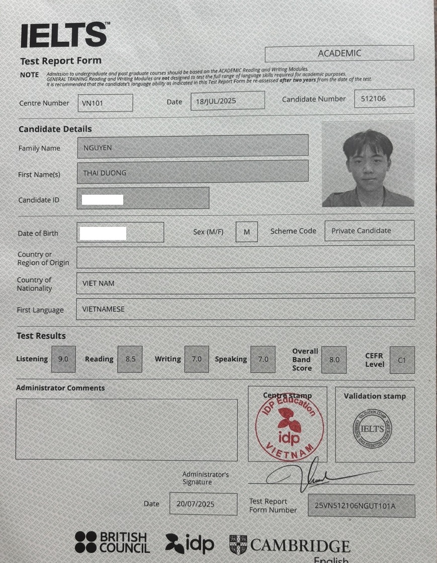 Em tiến bộ rõ rệt nhất ở Writing và Speaking, và bí quyết thì rất đơn giản: chỉ cần chăm chỉ hoàn thành đầy đủ các bài tập mà Summit giao.