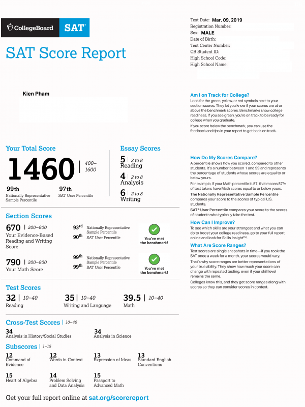 Chắc hẳn SAT là một trong những thử thách khó nhất đối với các bạn muốn đi du học Mỹ. Trước khi mình vào Summit, kĩ năng đọc và vốn từ vựng của mình rất kém. Nói thật ra thì mình cũng không thích học SAT lắm. Càng lo lắng hơn do mình không biết phải ôn như thế nào. Nhưng từ khi học ở Summit, các thầy cô và các bạn giỏi trong lớp luôn khiến mình phải học thật nghiêm túc, cật lực. Thầy Myo đã giúp em hiểu sâu về bài đọc và vượt qua những câu hỏi bẫy trong bài thi, giúp mình làm các bài đọc một cách hiệu quả và đúng. Thầy luôn tận tâm trả lời những thắc mắc của các bạn và giải thích các câu hỏi một cách rất dễ hiểu. Hơn nữa, mỗi tuần lại có một bài kiểm tra từ vựng rất bổ ích, giúp em tăng cường vốn từ vựng. Từ khi học ở Summit, vốn từ vựng khả năng đọc của mình được cải tiến rõ rệt. Em thầy tài lệu học và đề thi của Summit cũng rất là chất lượng, khoa học, sát với đề thi thật. Cũng có một số bài khó hơn thi thật giúp chúng em quen với những dạng câu hỏi khó và không bị bỡ ngỡ trước những câu hỏi đó trong lúc thi thật.Thầy cũng giao tương đối nhiều bài tập về nhà, nhưng cũng chính vì thế làm cho em phải làm bài thật nghiêm túc. Nếu bạn nghe kĩ trên lớp và bỏ ra thời gian làm đầy đủ bài tập về nhà thì được điểm SAT mong muốn là hoàn toàn trong tầm tay.